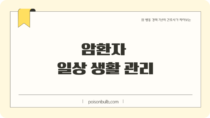 이 글에서는 암환자분들이 치료 중과 치료 후에 꼭 실천해야 할 생활 관리법을 전문적인 관점에서 정리하여 안내해 드리고자 합니다. 올바른 생활 습관으로 암을 극복하는 데 실질적인 도움을 받으시길 바랍니다.